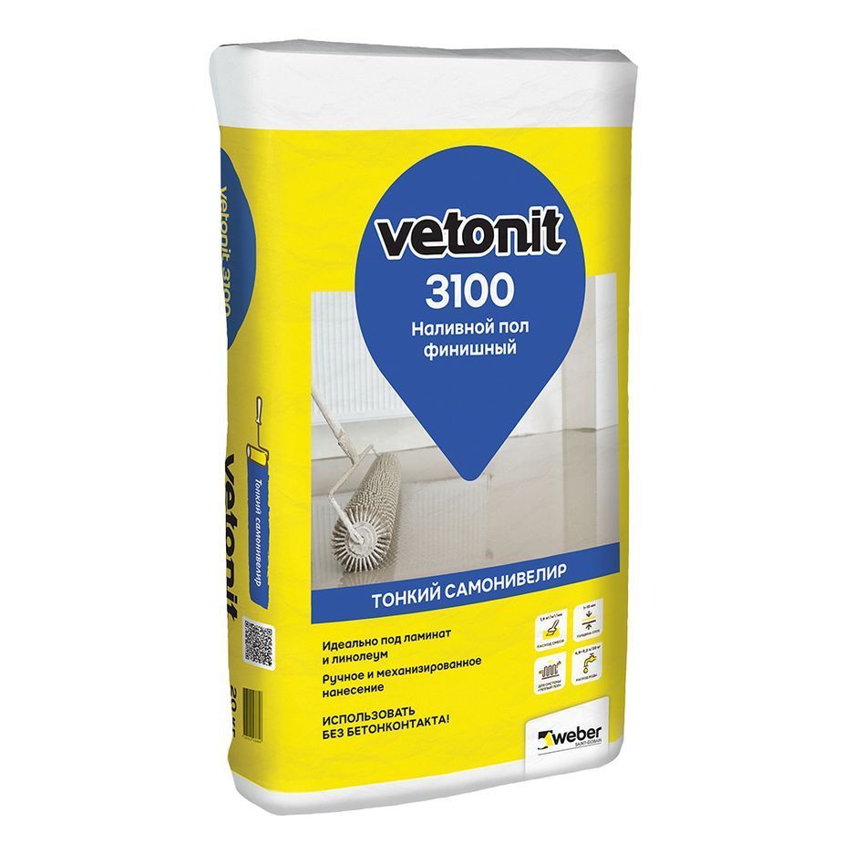 ВЕБЕР.ВЕТОНИТ 3100 / Weber.Vetonit 3100 - финишный наливной цементный пол для бытовых и коммерческих помещений. Походит как для ручного, так и механизированного применения. Комфортен в работе. Создает финишную гладкую поверхность под дальнейшую укладку различных напольных покрытий. Идеальное решение под ламинат и линолеум. Позволяет сделать заливку пола в тонкий слой 1-15 мм. Подходит для полов с подогревом. Укладка напольного покрытия через 3 - 7 дней.