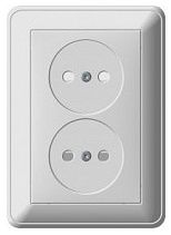 W59 Розетка двойная скрытая без заземления 16А белая отличается оригинальным дизайном и подходит для электросетей общего назначения.