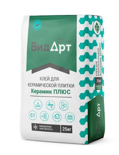 Клей усиленный ВидАрт Керамик ПЛЮС для керамической плитки рекомендован для крепления керамической, кафельной плитки и керамогранита (только на пол) на бетонные, цементные основания, основания из ячеистого бетона, гидроизоляционные (цементные) покрытия, цементные, цементно-известковые штукатурки и шпаклёвки, ГВЛ, ГКЛ и «теплые полы». Рекомендован для работ на балконе, фасаде и цоколе.