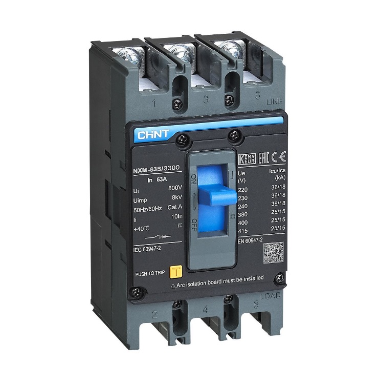 NXM – серия автоматических выключателей с номинальным током до 1600А и отключающей способностью до 100кА. Автоматы поставляются как с термомагнитными так и электронными расцепителями, а также поддерживают установку широкого спектра аксессуаров: вспомогательных и аварийных контактов, независимых расцепителей, мотор-редукторов, выносных поворотных рукояток. Автоматический выключатель CHINT 3п 16А 50кА NXM-63H (R) 205891 в литом корпусе используется в вводно-распределительных устройствах типа АВР, ВРУ, ГРЩ. Устройство обеспечивает защиту цепи и оборудования от перегрузки, пониженного напряжения и короткого замыкания.
