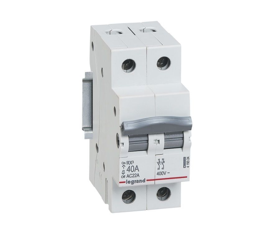 Выключатель-разъединитель IEK (Legrand) 2 полюса 40 А RX3 419324 обеспечивает разъединение и изоляцию электрических цепей под нагрузкой. Чёткая индикация разъединения.