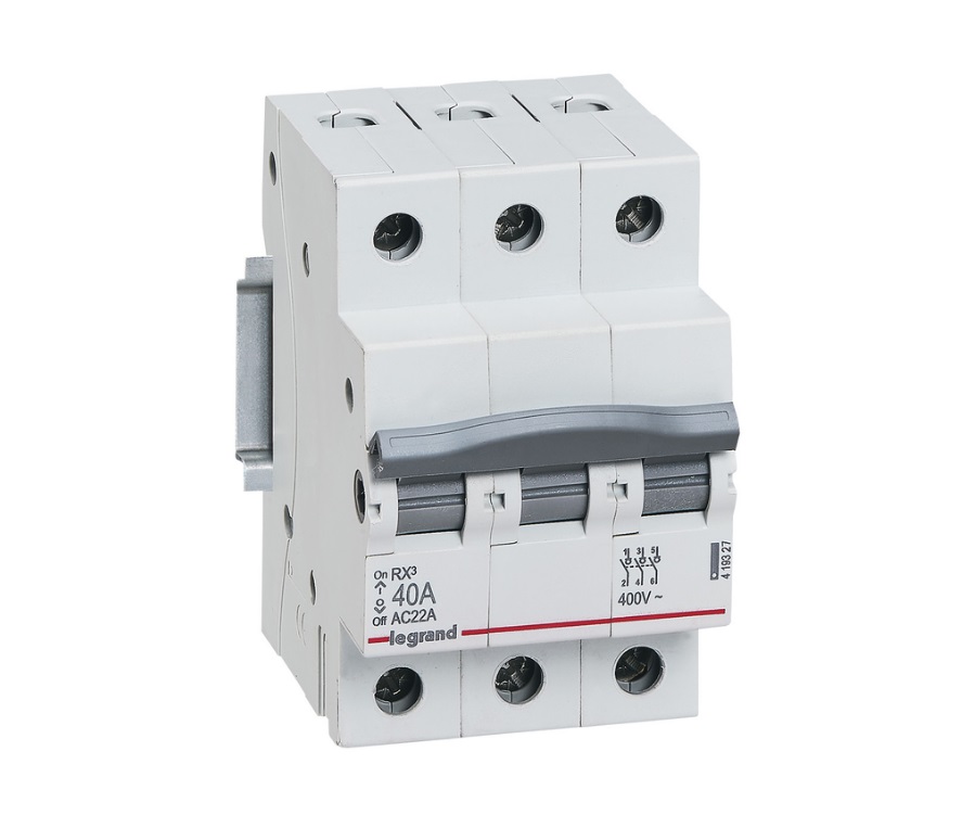 Выключатель-разъединитель IEK (Legrand) 3 полюса 40 А RX3 419327 обеспечивает разъединение и изоляцию электрических цепей под нагрузкой. Чёткая индикация разъединения.