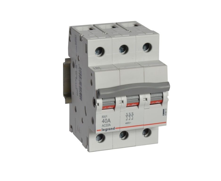 Выключатель-разъединитель IEK (Legrand) 3 полюса 40 А RX3 419412 обеспечивает разъединение и изоляцию электрических цепей под нагрузкой. Чёткая индикация разъединения.