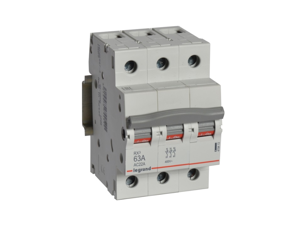 Выключатель-разъединитель IEK (Legrand) 3 полюса 63 А RX3 419413 обеспечивает разъединение и изоляцию электрических цепей под нагрузкой. Чёткая индикация разъединения.