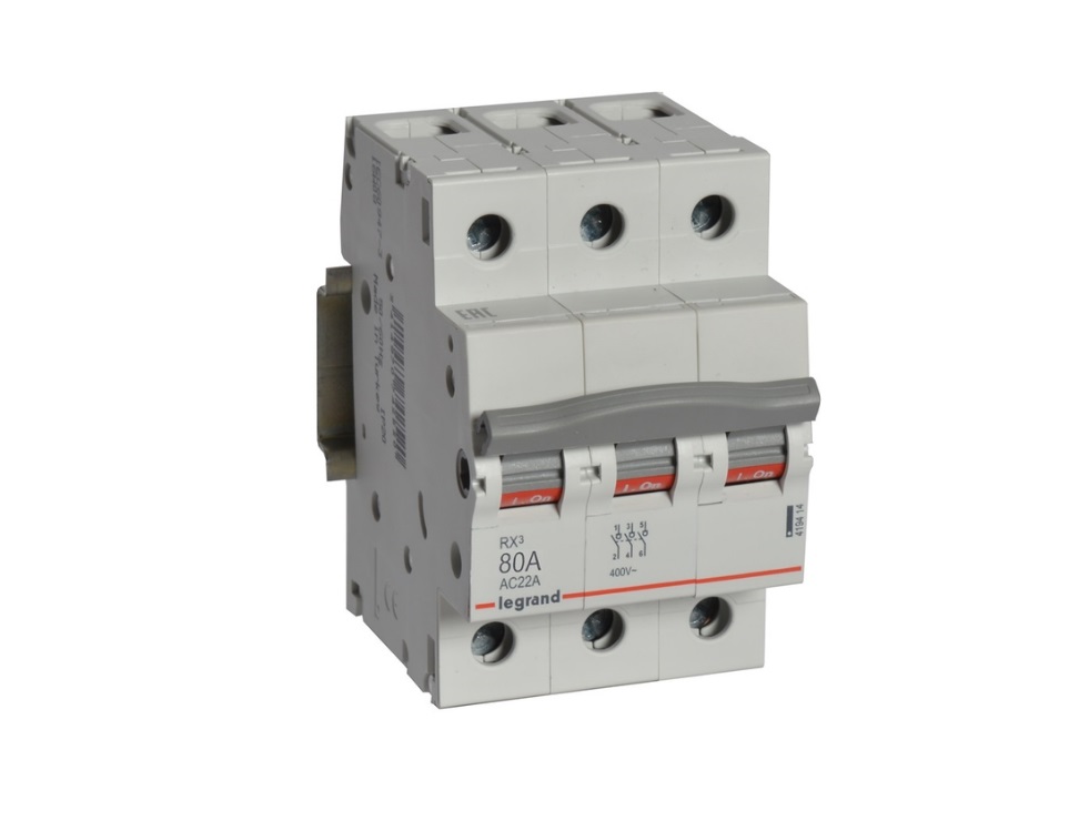 Выключатель-разъединитель IEK (Legrand) 3 полюса 80 А RX3 419414 обеспечивает разъединение и изоляцию электрических цепей под нагрузкой. Чёткая индикация разъединения.