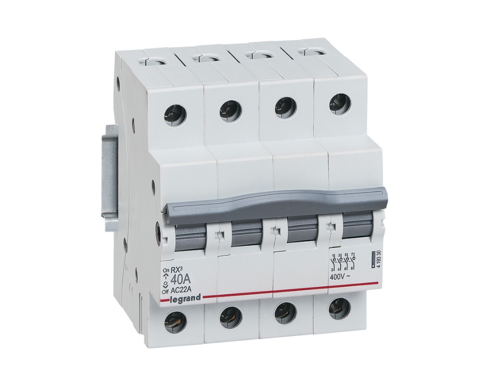 Выключатель-разъединитель IEK (Legrand) 4 полюса 40 А RX3 419330 обеспечивает разъединение и изоляцию электрических цепей под нагрузкой. Чёткая индикация разъединения.