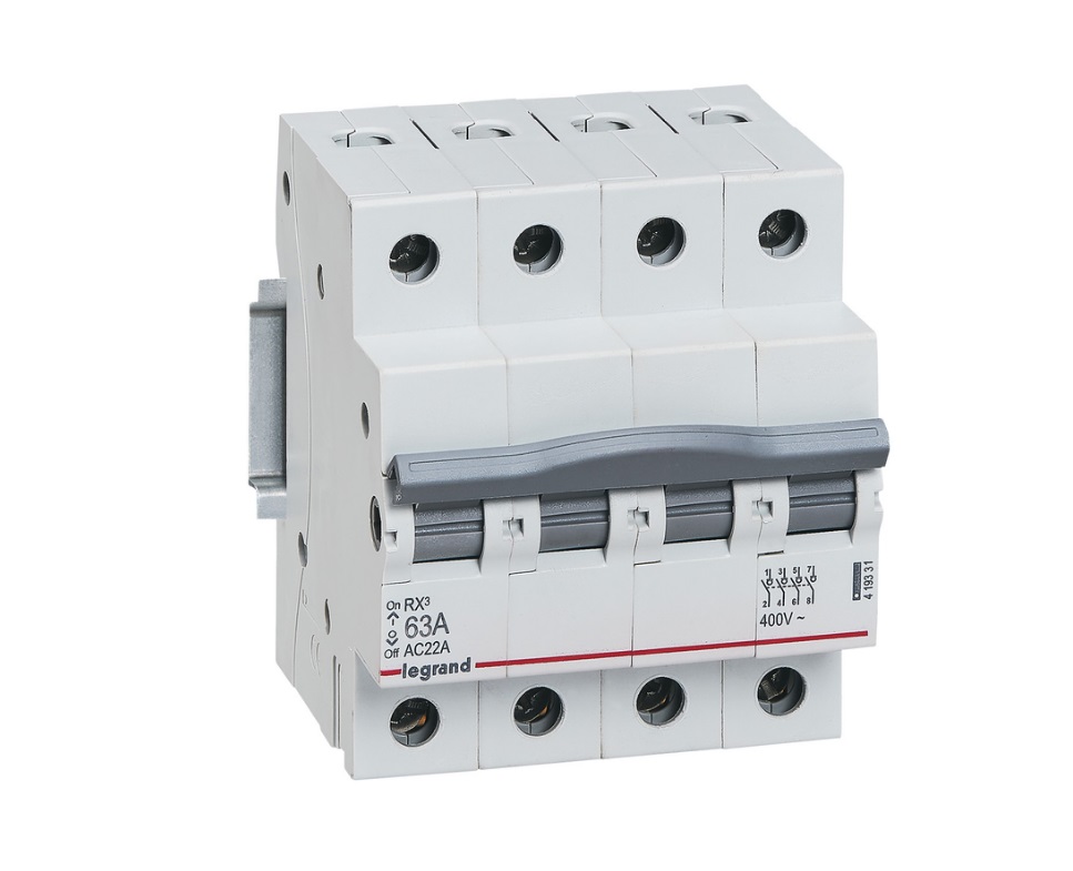 Выключатель-разъединитель IEK (Legrand) 4 полюса 63 А RX3 419331 обеспечивает разъединение и изоляцию электрических цепей под нагрузкой. Чёткая индикация разъединения.