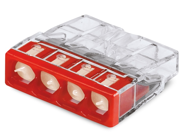 Клемма 4x2.5мм красная/прозрачная из-за своих чрезвычайно малых размеров идеально подходит для применения в ограниченном пространстве. Монтаж производится гораздо проще, обеспечивая дополнительную свободу для будущих расширений. Два легкодоступных порта для тестирования, один в направлении и один напротив входа проводника, обеспечивают легкий процесс тестирования, даже при установке.