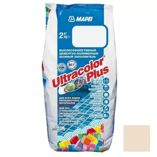 Затирка Mapei Ultracolor Plus №130 Жасмин (2 кг) - высококачественный шовный заполнитель на цементной основе. Предназначен для заполнения швов на стенах и полах внутренней и внешней облицовки всех видов керамической плитки (одинарного и двойного обжига, керамогранита и клинкера), терракоты, каменных материалов (натуральный камень, мрамор, гранит, агломераты и т.д.), стеклянной и мраморной мозаики.